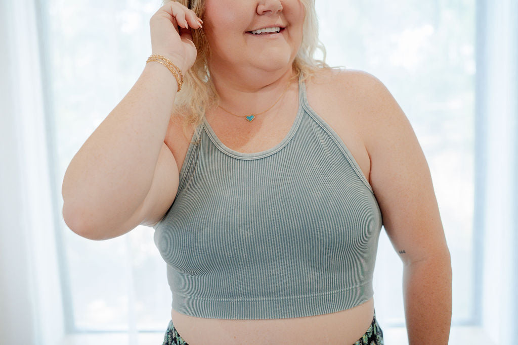 Indulge in all-day comfort with our Kick The Dust Up Dusty Blue Plus Size Bralette. This cozy bralette is true to size and provides ample support once you've settled in. Perfect for larger chests, you may choose to layer with a traditional bra for added comfort and support.